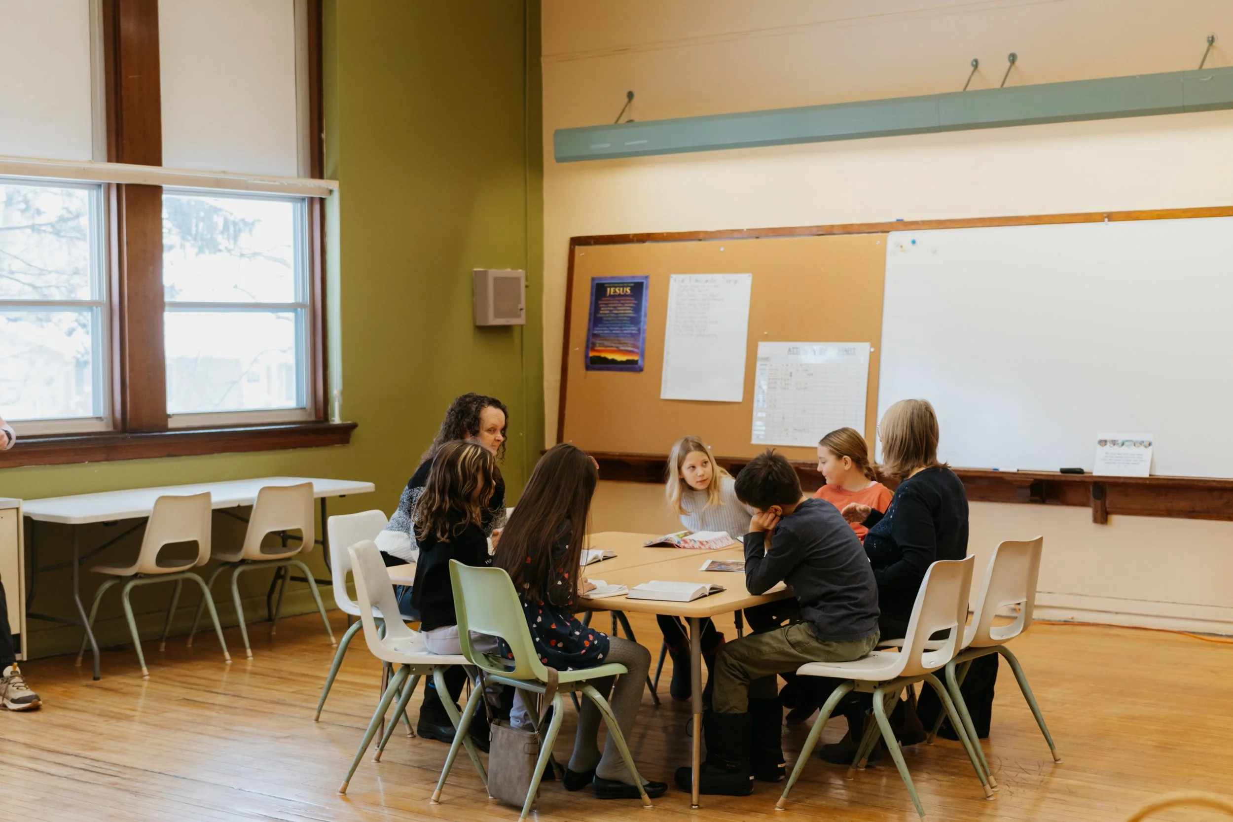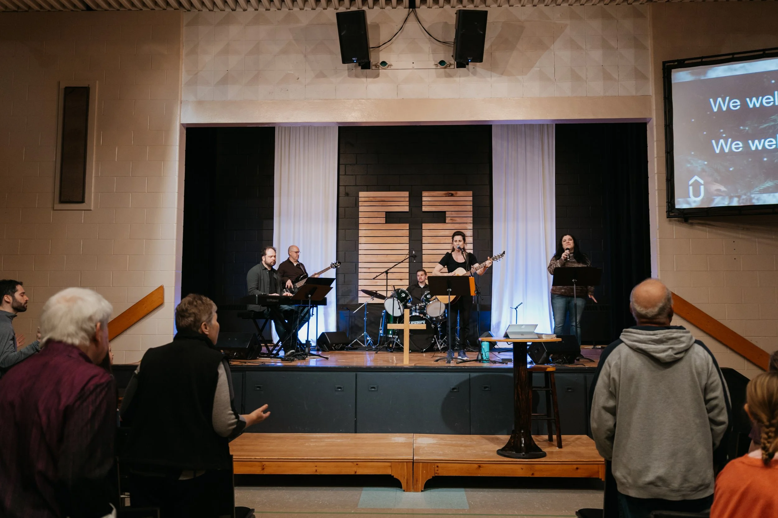 We’re a big family here. Literally. You’ll hear kids laughing (and crying) and people chatting. We can’t be very formal, and we don’t try to be either. You can bring in your coffee or have one on us. We are all God’s children getting together to learn, serve, and celebrate.